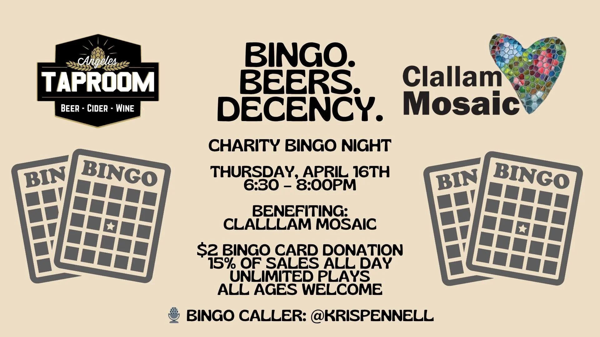 Charity Bingo Night at Angeles Taproom! - $2 donation per bingo card + 15% of sales go directly to nonprofit or charity of our choice. - All ages. - Play for prizes. Support local causes.